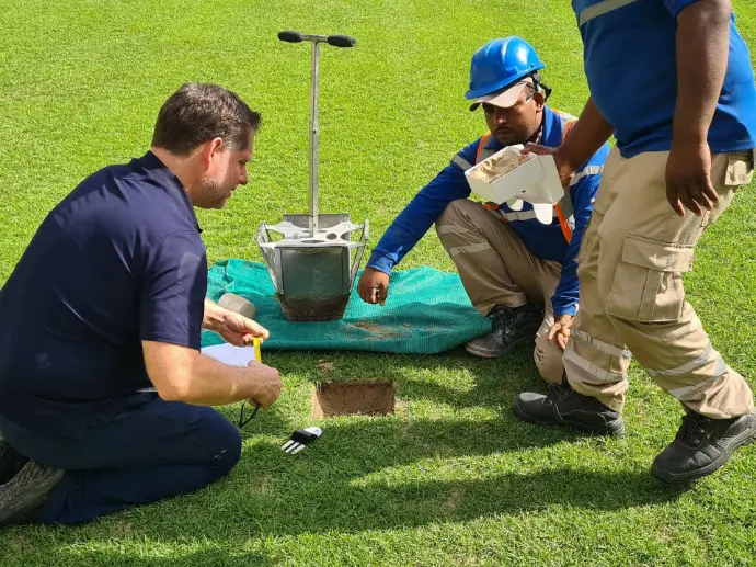 Soil Scout propose les capteurs souterrains sans fil les plus avancés : ils transmettent, d’un même point de mesure, l’humidité, la température, la salinité et l’oxygène à plusieurs profondeurs — le tout en temps réel, jusqu’à 2 mètres sous la surface, pendant vingt ans sans entretien. Pour les pros du gazon sportif, savoir ce qui se passe sous la surface tout au long de la saison est essentiel pour maximiser le temps de jeu et la qualité du terrain. Qu’il s’agisse de visualiser en détail les variations d’une zone à l’autre ou de déclencher au bon moment les interventions dépendantes de l’humidité ou de la température, Soil Scout oriente vos opérations exactement là où c’est nécessaire. Les données, envoyées sans fil depuis les profondeurs, offrent à la fois un suivi instantané et une analyse des tendances à long terme de vos surfaces clés. Que vous vouliez ouvrir votre terrain une semaine plus tôt, réduire l’impact des carottages, ou optimiser l’usage de l’eau et des engrais, nous vous aidons à comprendre en profondeur vos opérations et à rentabiliser chaque euro.